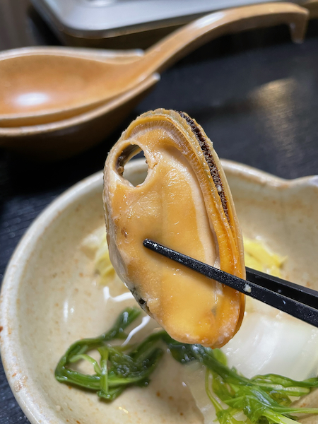 ムール貝は大きな貝柱の箇所がそのまま穴になってしまった(笑)。