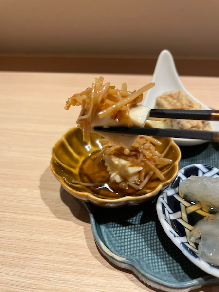出汁醤油で和えられてました。コリコリしてて美味しかったです。